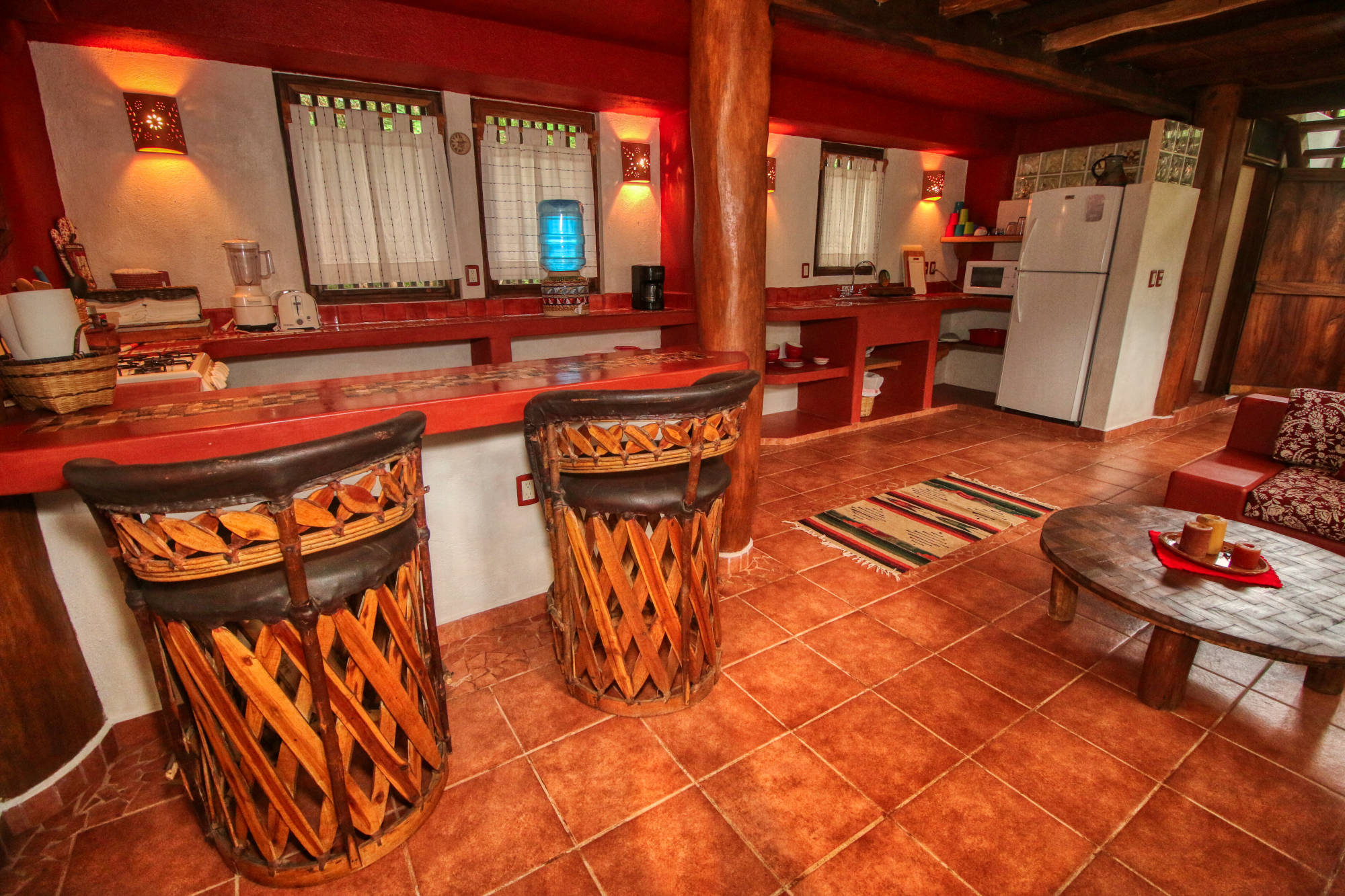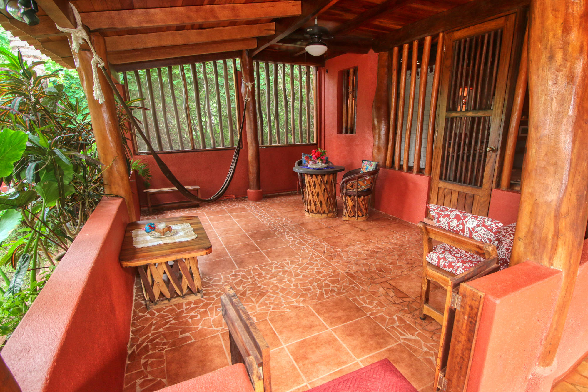 The casa consists of the kitchen and living / dining area and a bathroom on the ground floor with the bedroom and additional bathroom on the 2nd floor. There is a patio at the front of the house before entering and just off the bedroom upstairs, a small screened in balcony with chairs and a table.